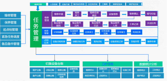 细化设备维修、设备点检、设备保养各个阶段的任务,提高了各个阶段的协调处理;